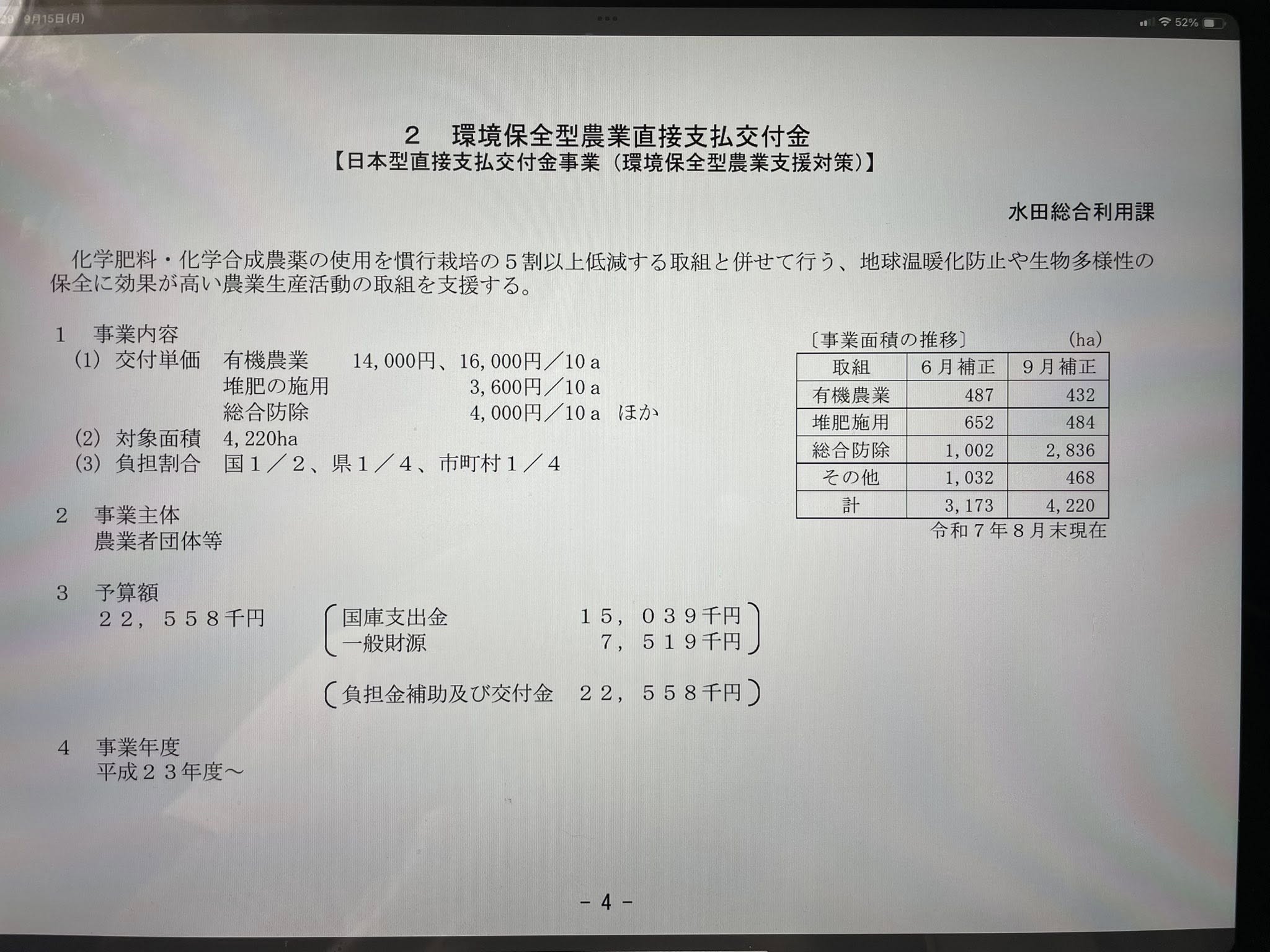 □9月議会予算内容の勉強