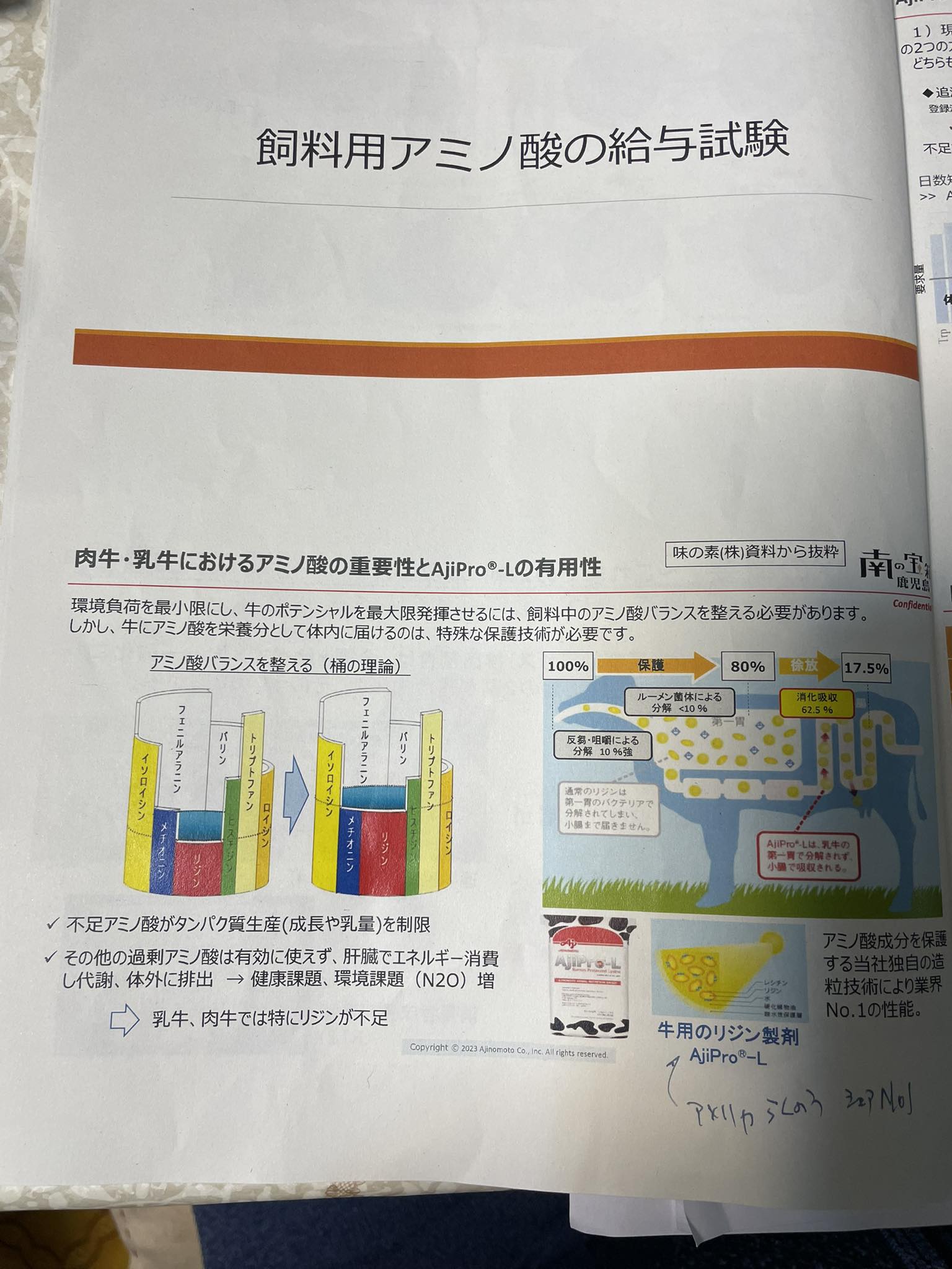 ・通常のリジンは牛の第一胃のバクテリアで分解されてしまい小腸まで届かない。