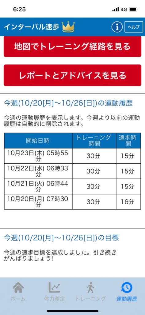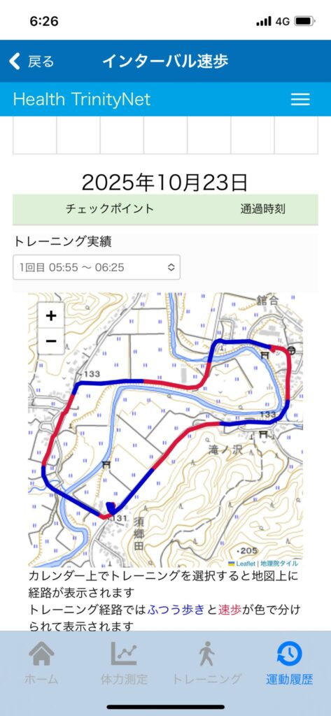 使用のインターバル速歩アプリは歩行コース足跡をデータ保存されます。