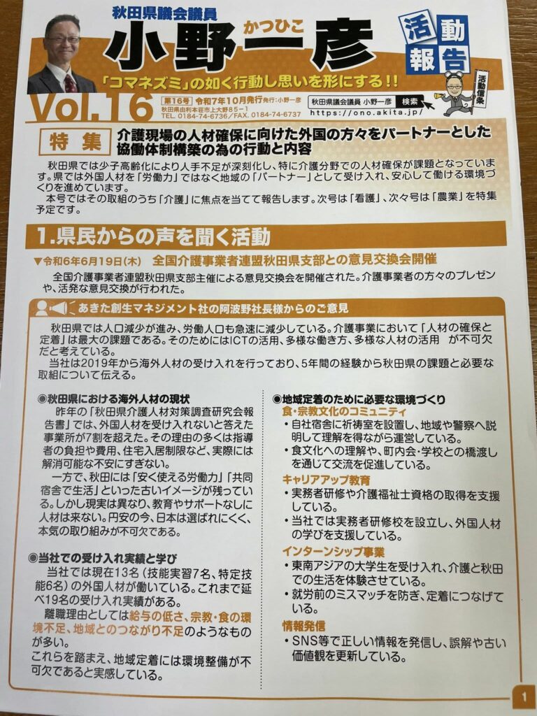新聞折込用小野一彦活動報告原稿校正作業