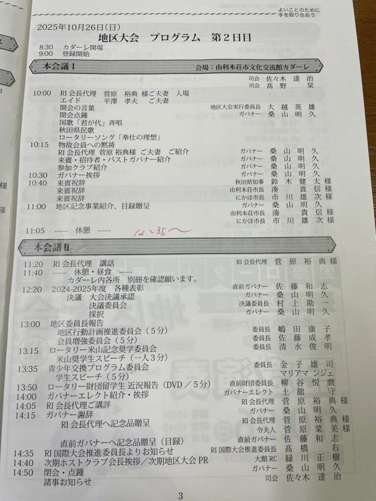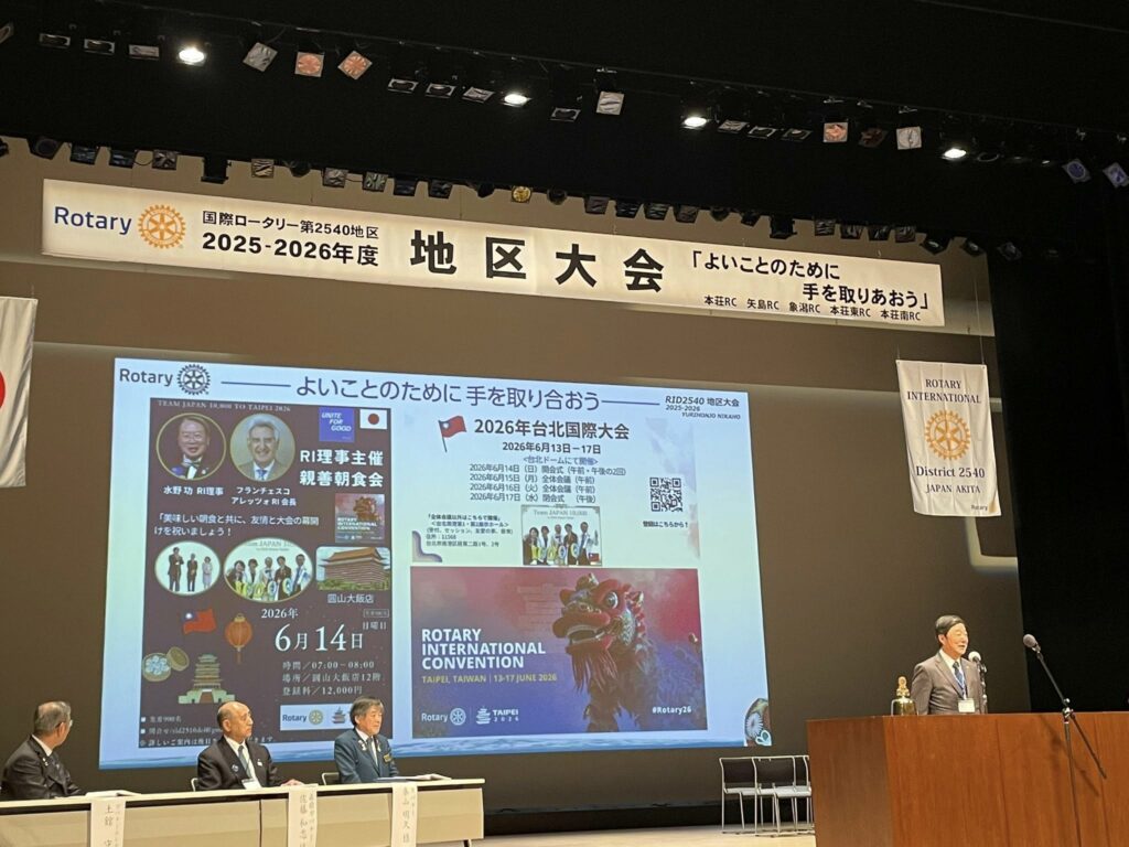 コ・ホストクラブは矢島ロータリークラブ、象潟ロータリークラブ、本荘東ロータリークラブ、本荘ロータリークラブ