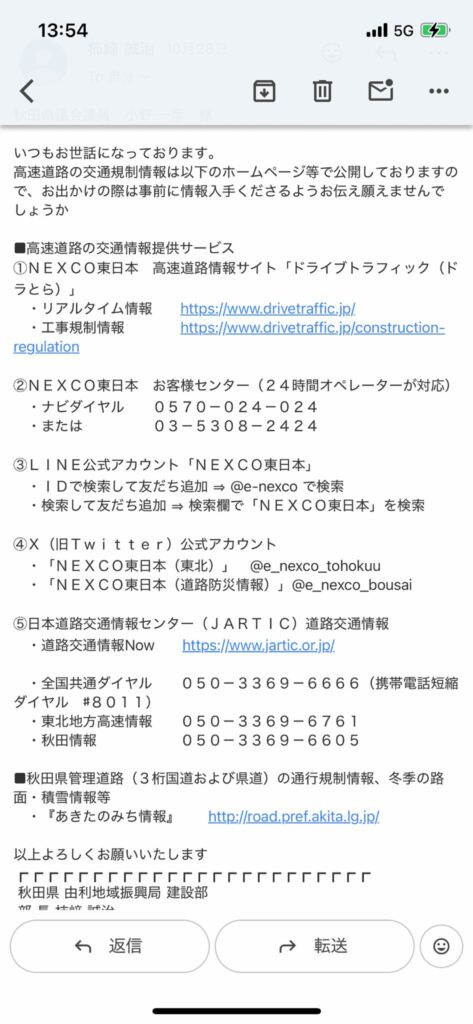 ・同時に県管理道路での情報発信など県ができることを対応してほしい。