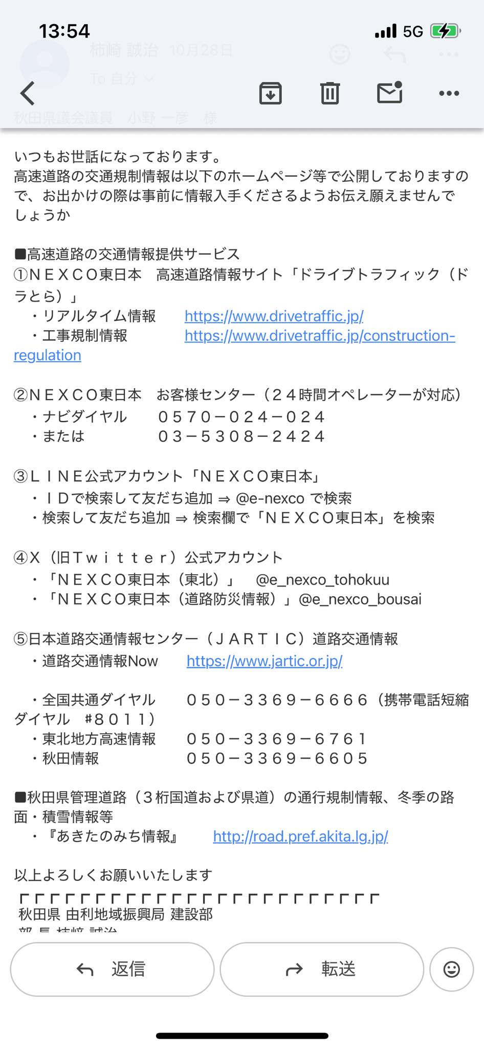 ・同時に県管理道路での情報発信など県ができることを対応してほしい。