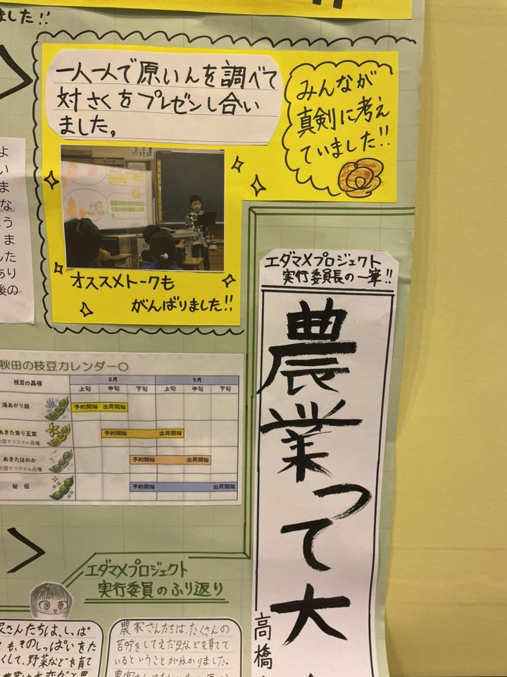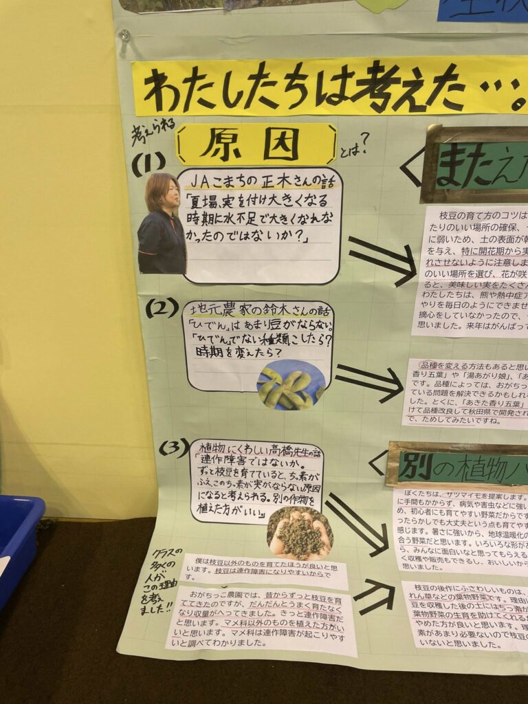 ・例えば、湯沢市雄勝小では「わたしたちは枝豆栽培で何故失敗したか」を徹底究明。