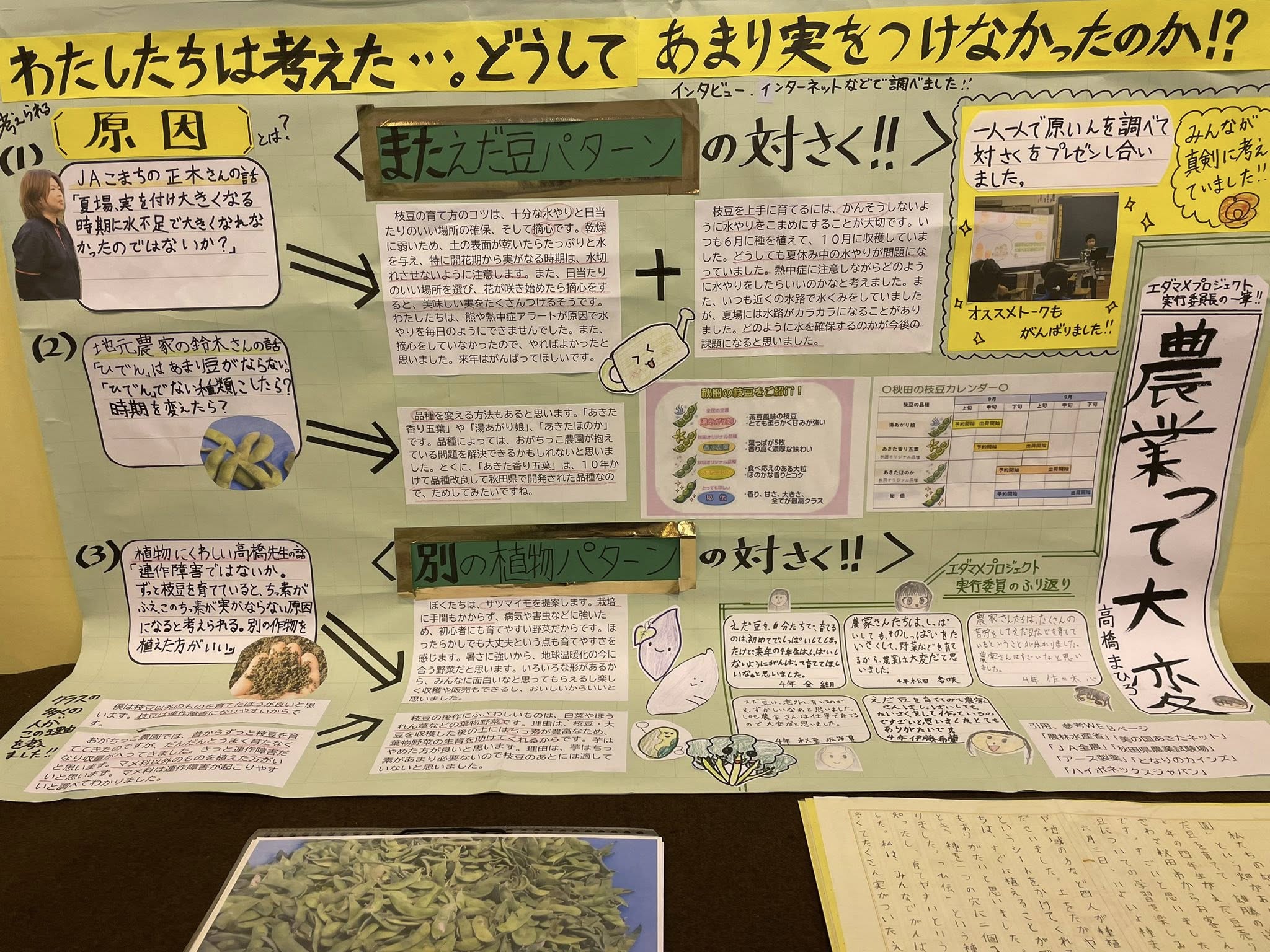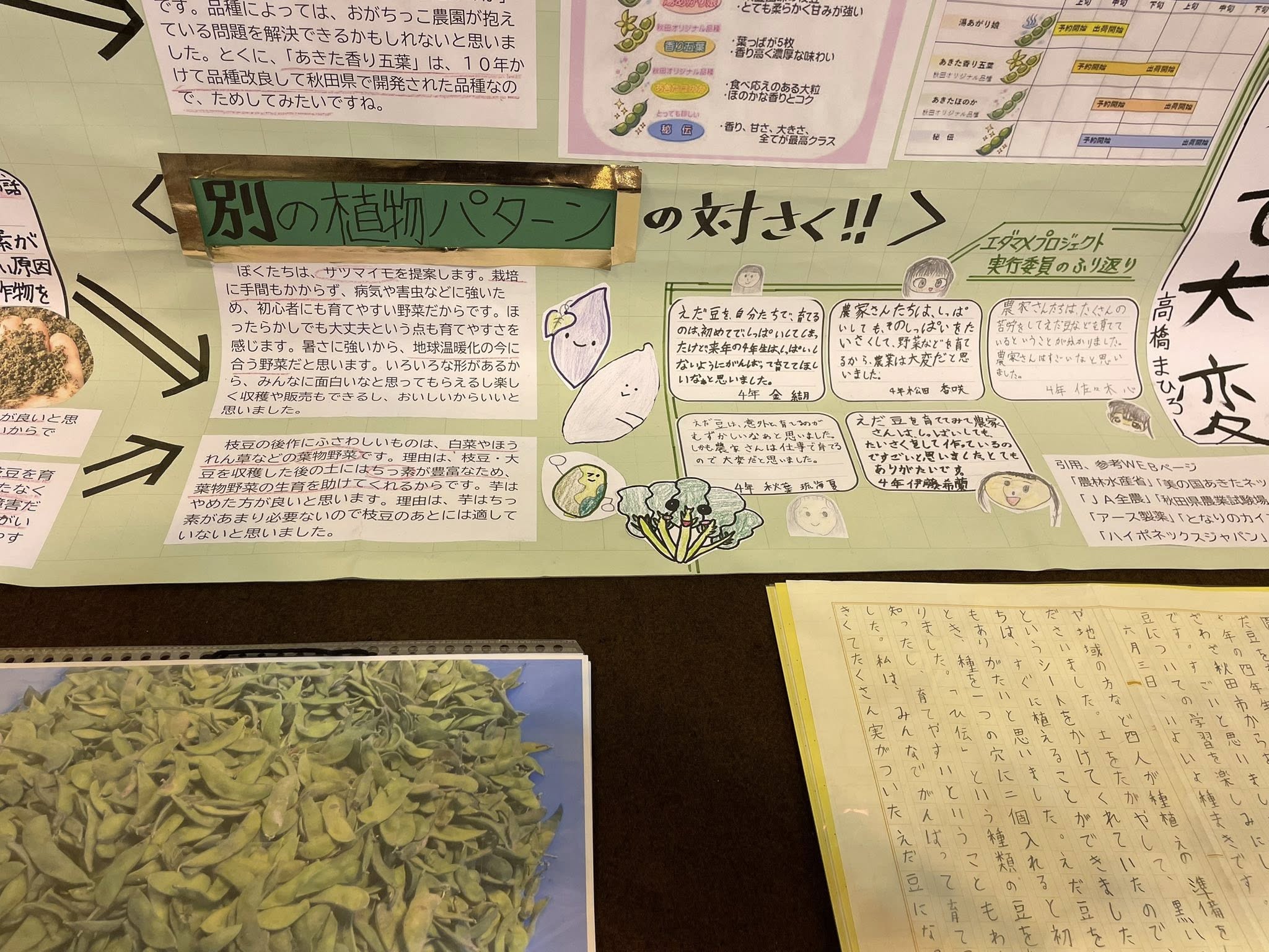 ・例えば、湯沢市雄勝小では「わたしたちは枝豆栽培で何故失敗したか」を徹底究明。