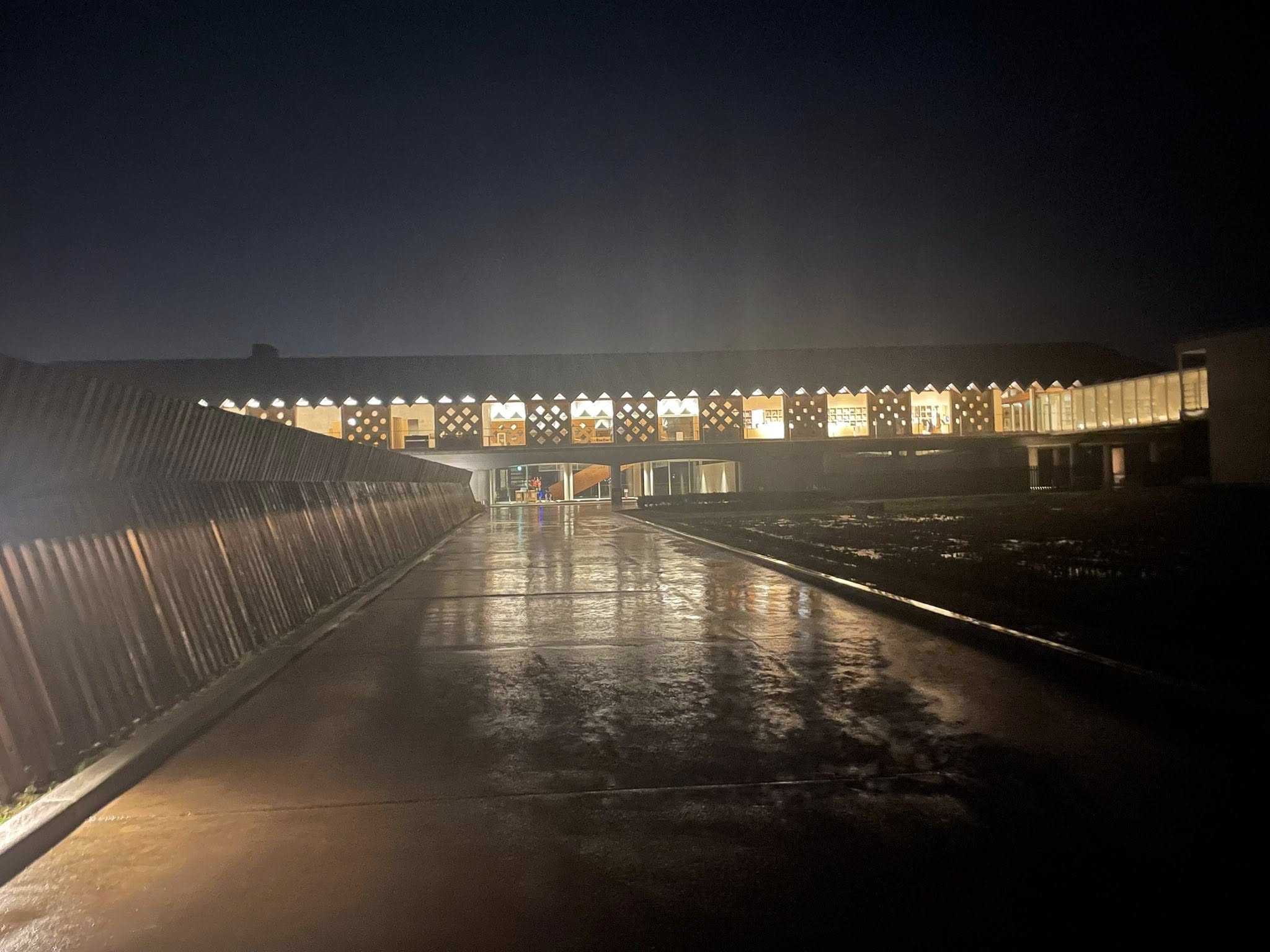 まだ暗い早朝、冷たい銀の雨が降り続く朝