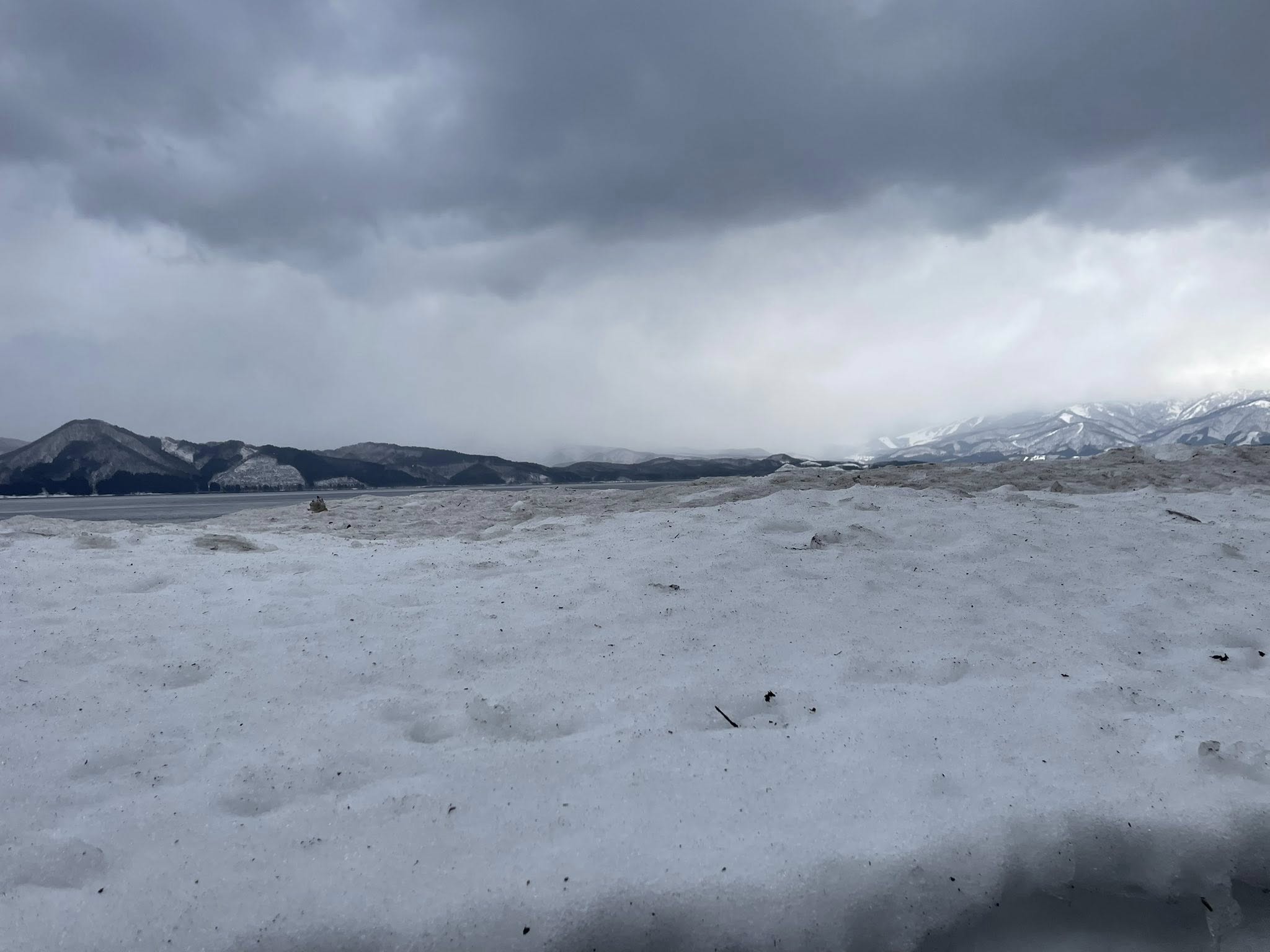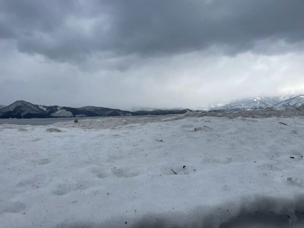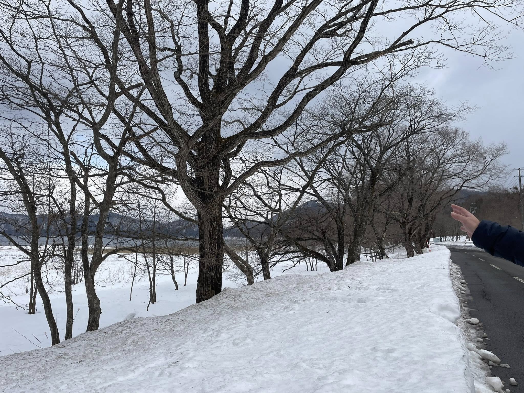 ・今は雪で草が抑えられているが、雪がとけると下草が伸び、細い流木の葉っぱが繁茂し、湖が見えなくなる。